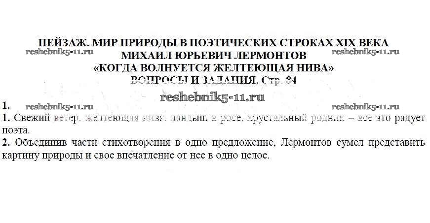 Решебник / часть 1 / Пейзаж... М. Ю. Лермонтов. Когда волнуется желтеющая нива / Вопросы и задания / 1