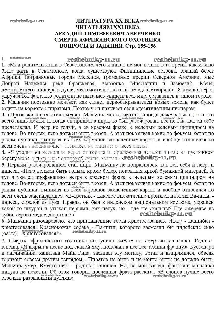 Решебник / часть 2 / Аркадий Тимофеевич Аверченко. Смерть африканского охотника / Вопросы и задания / 1