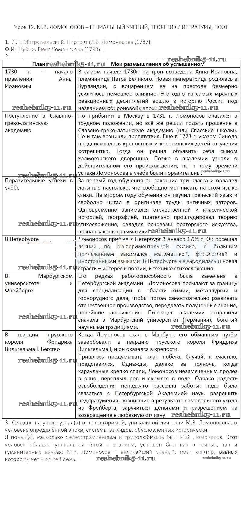 Литература за 6 класс Соловьева Рабочая тетрадь Инновационная школа Русское слово урок № 12