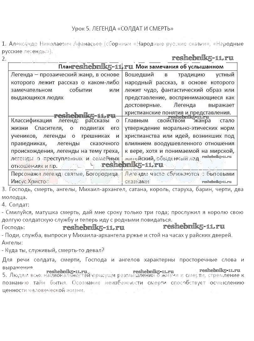 Литература за 6 класс Соловьева Рабочая тетрадь Инновационная школа Русское слово урок № 5