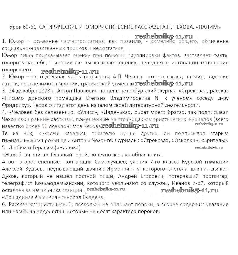 Готовая домашняя работа с ответами по Литературе за 6 класс Соловьева Рабочая тетрадь Инновационная школа Часть Русское слово 2016 ФГОС - Уроки 60-61