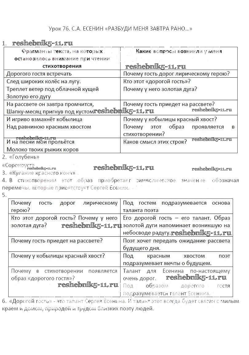 Литература за 6 класс Соловьева Рабочая тетрадь Инновационная школа Русское слово урок № 76