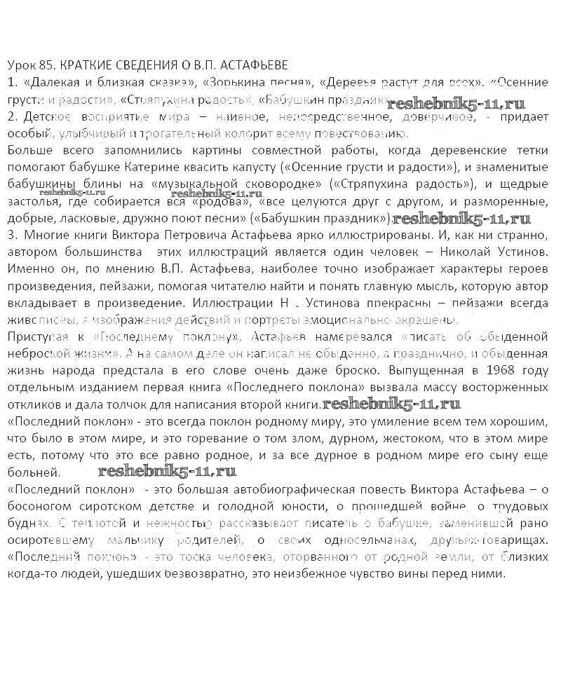 Литература за 6 класс Соловьева Рабочая тетрадь Инновационная школа Русское слово урок № 85