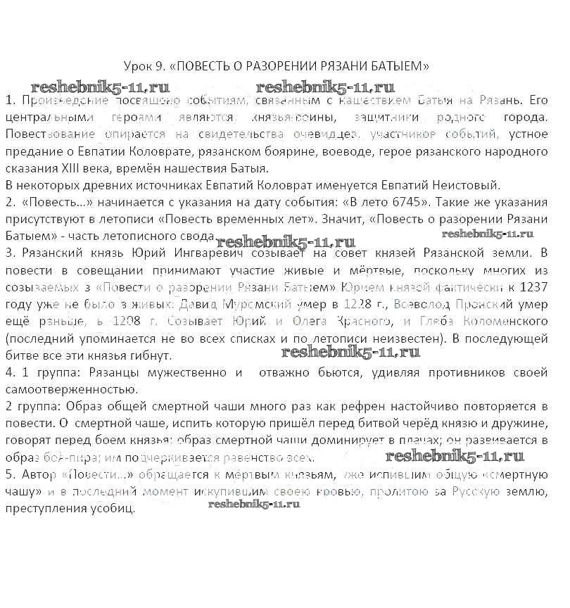 Готовая домашняя работа с ответами по Литературе за 6 класс Соловьева Рабочая тетрадь Инновационная школа Часть Русское слово 2016 ФГОС - Уроки 9