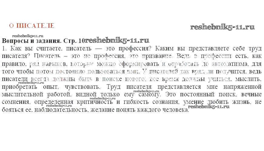 Решебник / часть 1 / О писателе. Вопросы и задания, стр. 10 / 1