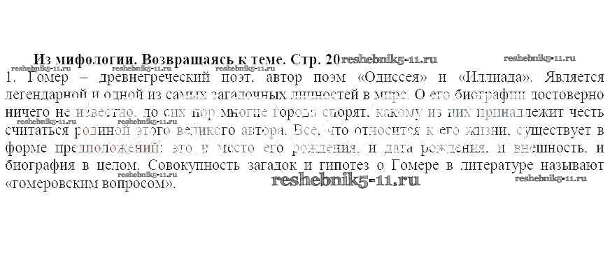 Готовая домашняя работа с ответами по Литературе за 6 класс Меркин Учебник Инновационная школа Часть 1, 2 Русское слово 2016 ФГОС - Из мифологии. Возвращаясь к теме, стр. 20 1
