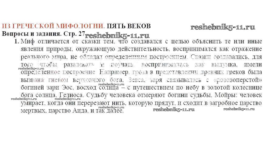Решебник / часть 1 / Из греческой мифологии. Пять веков / Вопросы и задания, стр. 27 / 1