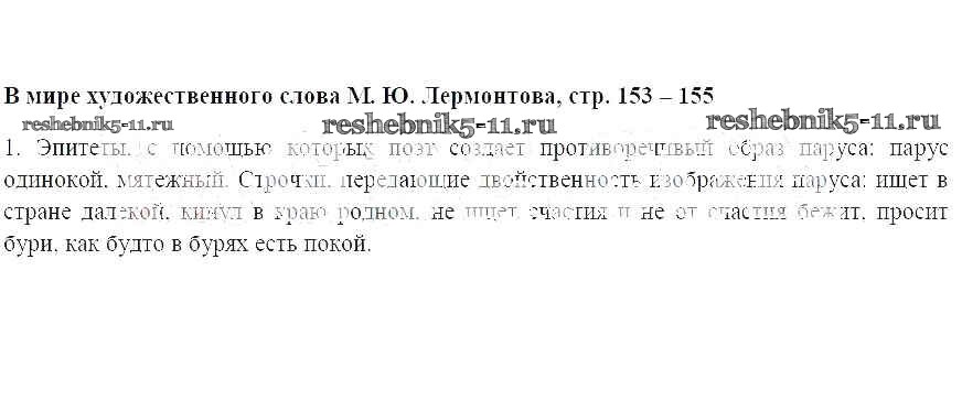 Решебник / часть 1 / Парус / В мире художественного слова М. Ю. Лермонтова, стр. 153 – 155 / 1