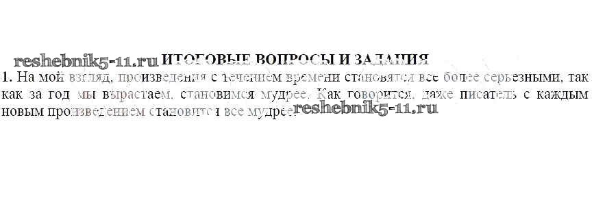 Готовая домашняя работа с ответами по Литературе за 6 класс Меркин Учебник Инновационная школа Часть 1, 2 Русское слово 2016 ФГОС - Итоговые вопросы и задания 1