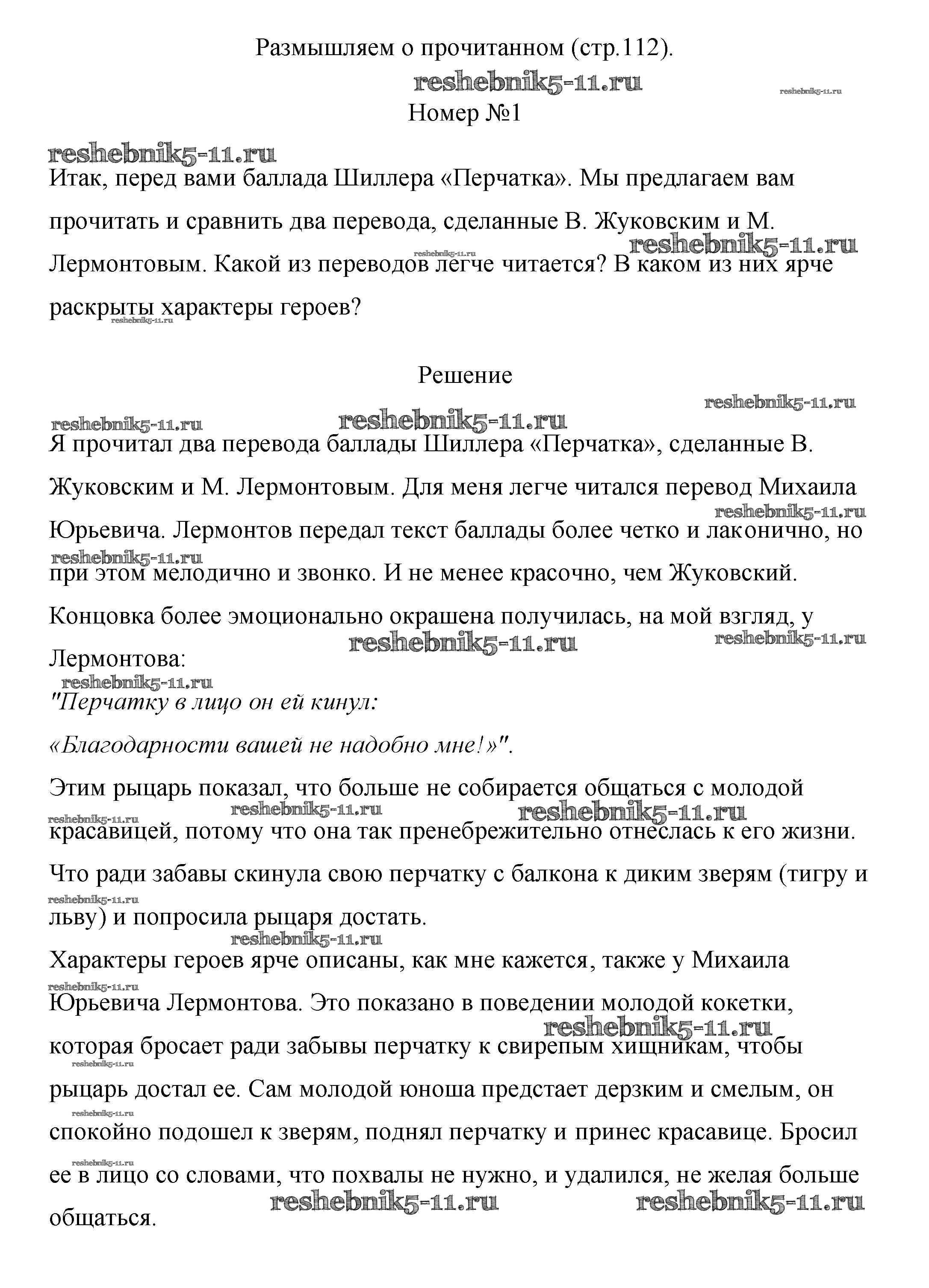 Готовая домашняя работа с ответами по Литературе за 6 класс Полухина, Коровина, Журавлев Учебник Просвещение 2016 ФГОС - Часть 1 (Страницы) 112