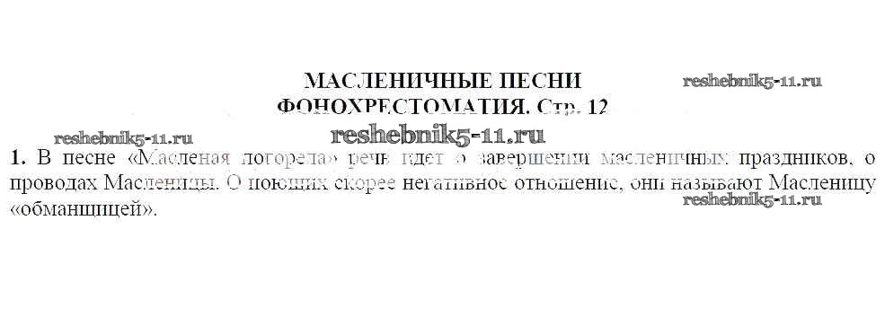 Готовая домашняя работа с ответами по Литературе за 6 класс Полухина, Коровина, Журавлев Учебник Просвещение 2016 ФГОС - Часть 1 (Страницы) 12