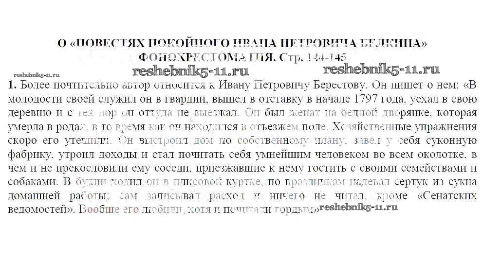 Готовая домашняя работа с ответами по Литературе за 6 класс Полухина, Коровина, Журавлев Учебник Просвещение 2016 ФГОС - Часть 1 (Страницы) 144-145