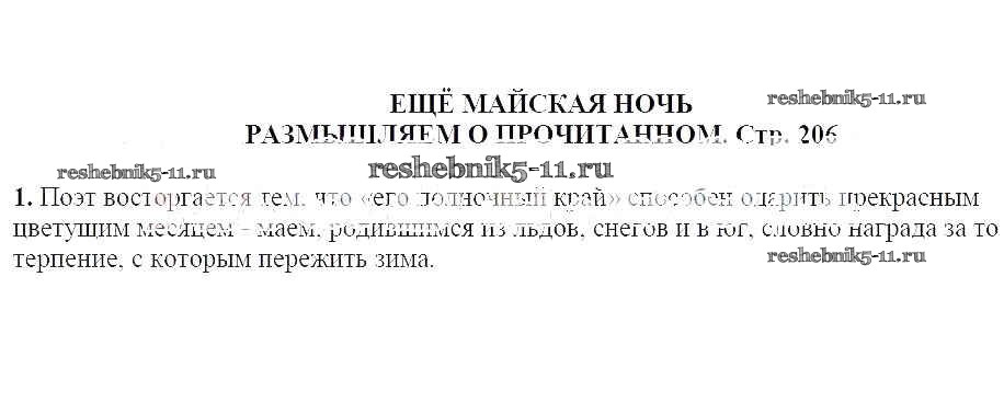 Готовая домашняя работа с ответами по Литературе за 6 класс Полухина, Коровина, Журавлев Учебник Просвещение 2016 ФГОС - Часть 1 (Страницы) 206