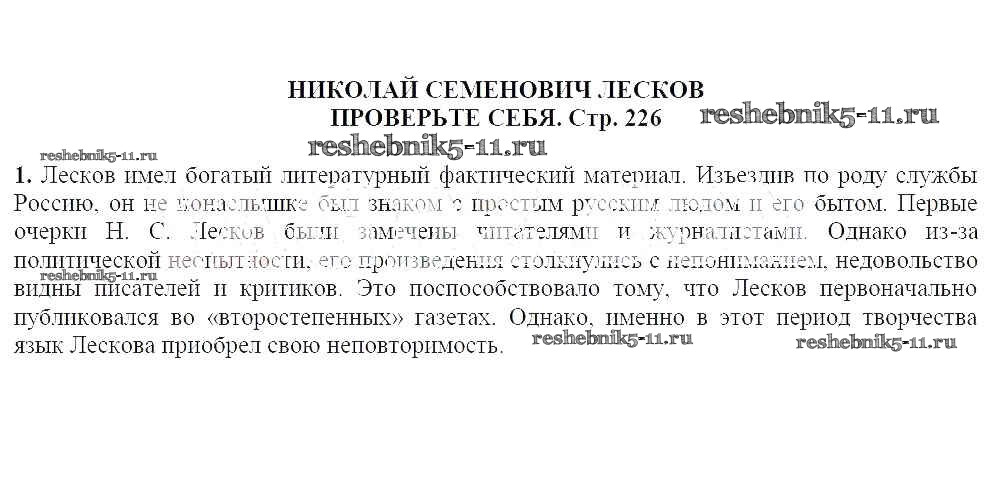 Готовая домашняя работа с ответами по Литературе за 6 класс Полухина, Коровина, Журавлев Учебник Просвещение 2016 ФГОС - Часть 1 (Страницы) 226