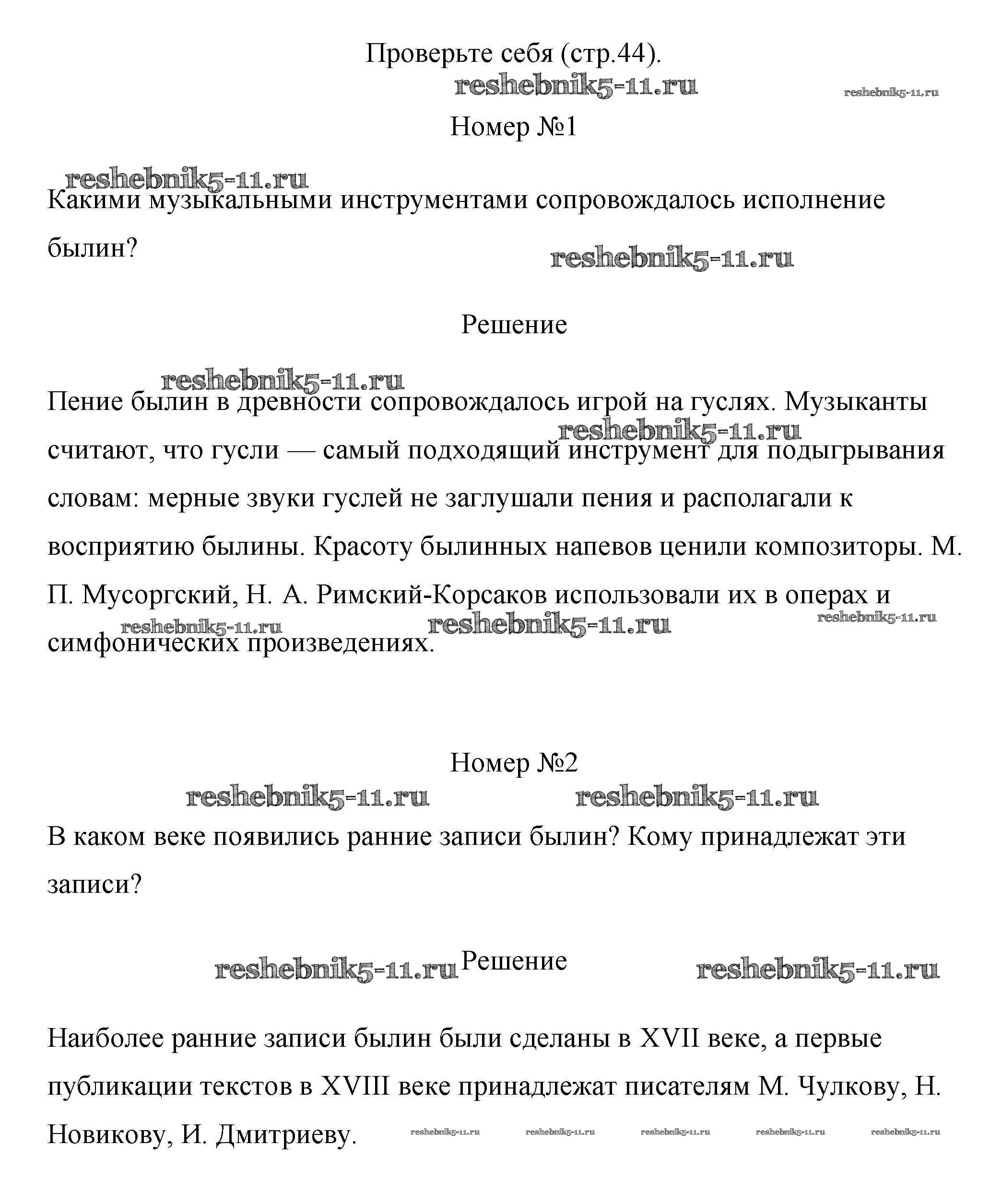 Готовая домашняя работа с ответами по Литературе за 6 класс Полухина, Коровина, Журавлев Учебник Просвещение 2016 ФГОС - Часть 1 (Страницы) 44
