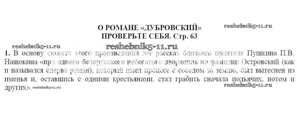 Готовая домашняя работа с ответами по Литературе за 6 класс Полухина, Коровина, Журавлев Учебник Просвещение 2016 ФГОС - Часть 1 (Страницы) 63