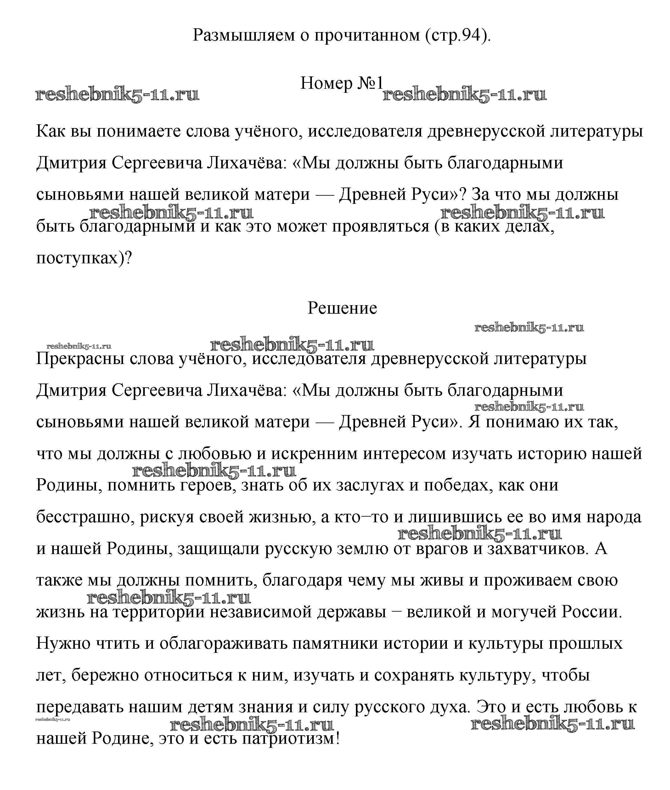 Готовая домашняя работа с ответами по Литературе за 6 класс Полухина, Коровина, Журавлев Учебник Просвещение 2016 ФГОС - Часть 1 (Страницы) 94