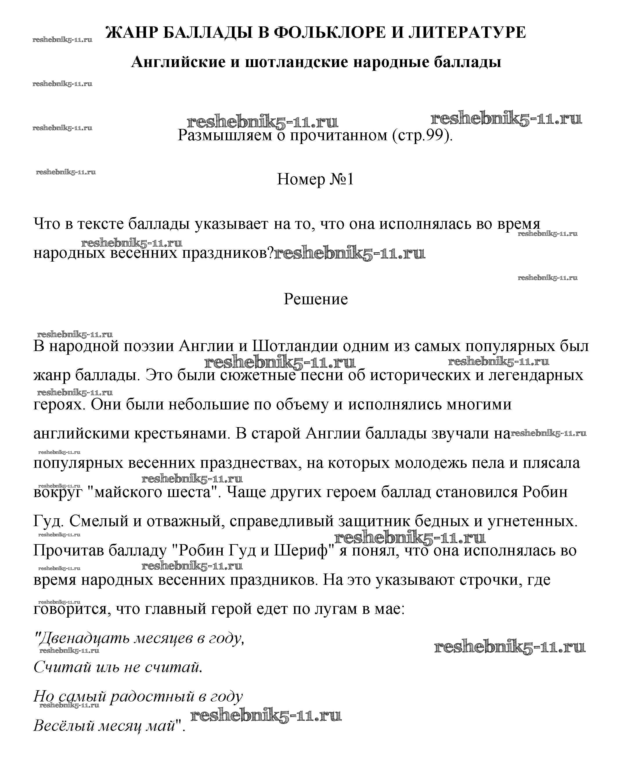 Готовая домашняя работа с ответами по Литературе за 6 класс Полухина, Коровина, Журавлев Учебник Просвещение 2016 ФГОС - Часть 1 (Страницы) 99