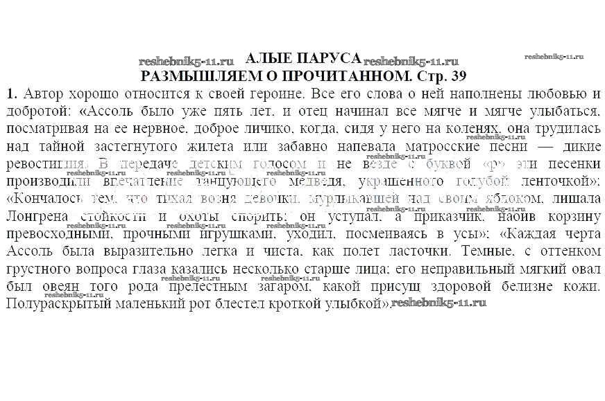 Готовая домашняя работа с ответами по Литературе за 6 класс Полухина, Коровина, Журавлев Учебник Просвещение 2016 ФГОС - Часть 2 (Страницы) 39