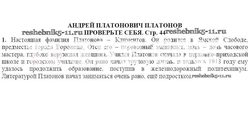 Готовая домашняя работа с ответами по Литературе за 6 класс Полухина, Коровина, Журавлев Учебник Просвещение 2016 ФГОС - Часть 2 (Страницы) 44