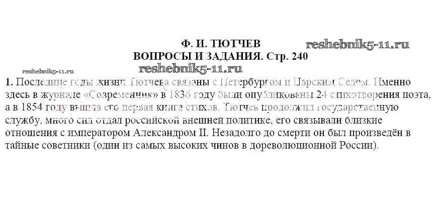 Решебник / часть 1 / Ф. И. Тютчев / Вопросы и задания / 1