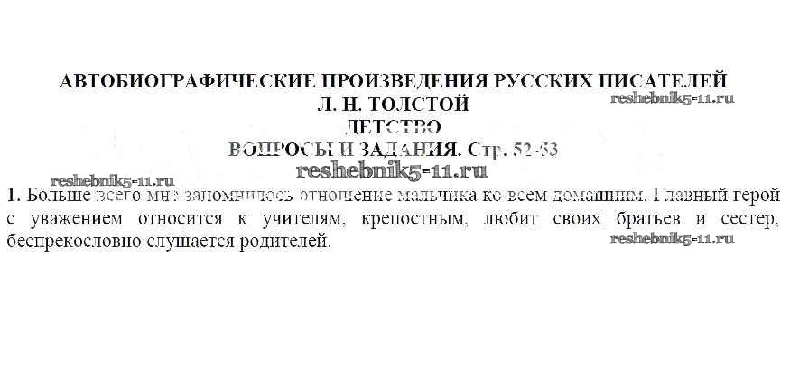 Решебник / часть 2 / Л. Н. Толстой. Детство / Вопросы и задания / 1