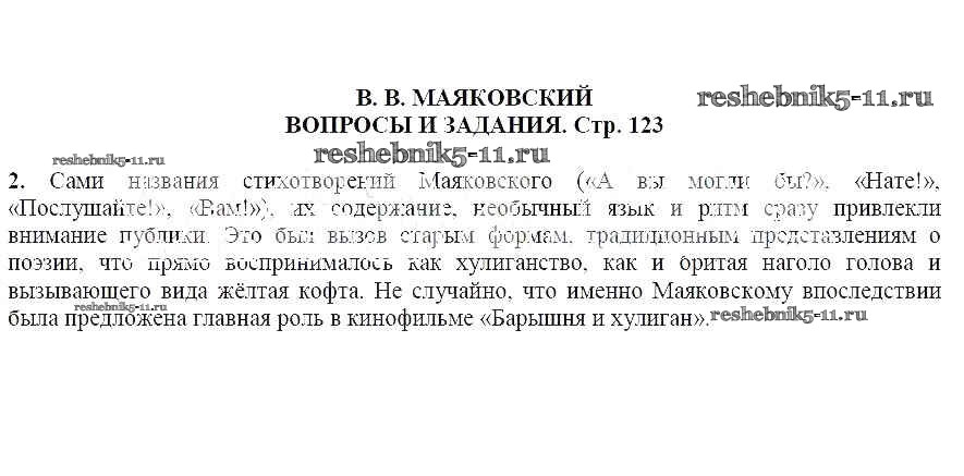 Решебник / часть 2 / B. В. Маяковский / Вопросы и задания / 2