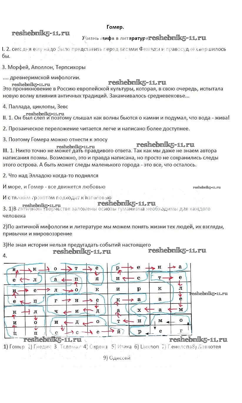 Готовая домашняя работа с ответами по Литературе за 6 класс Бунеев, Бунеева, Чиндилова Рабочая тетрадь Школа 2100 Баласс 2015 ФГОС - Темы Гомер. Жизнь мифа в литературе