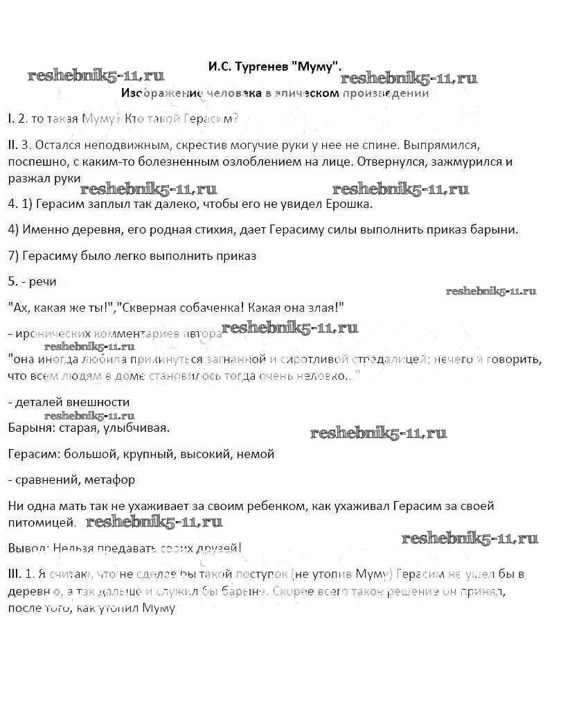 Решебник / тема / И.С. Тургенев. Муму. Изображение человека в эпическом произведении