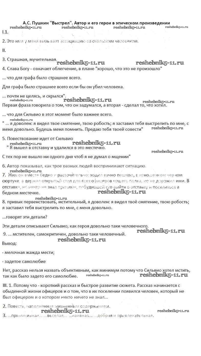 Решебник / тема / А.С. Пушкин. Выстрел. Автор и его герой в эпическом произведении