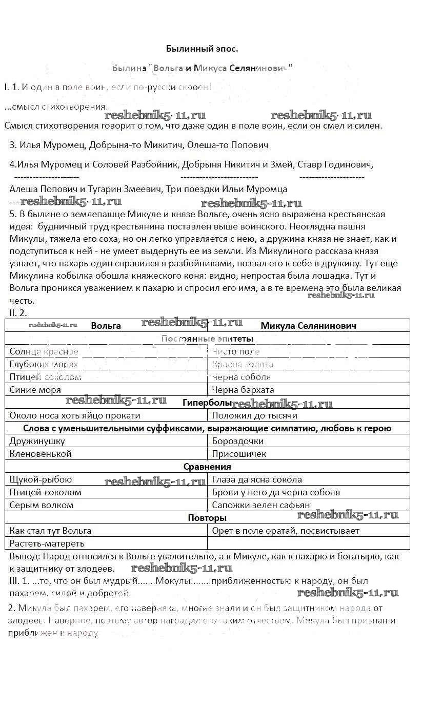 Решебник / тема / Былинный эпос. Былина Вольга и Микула Селянинович