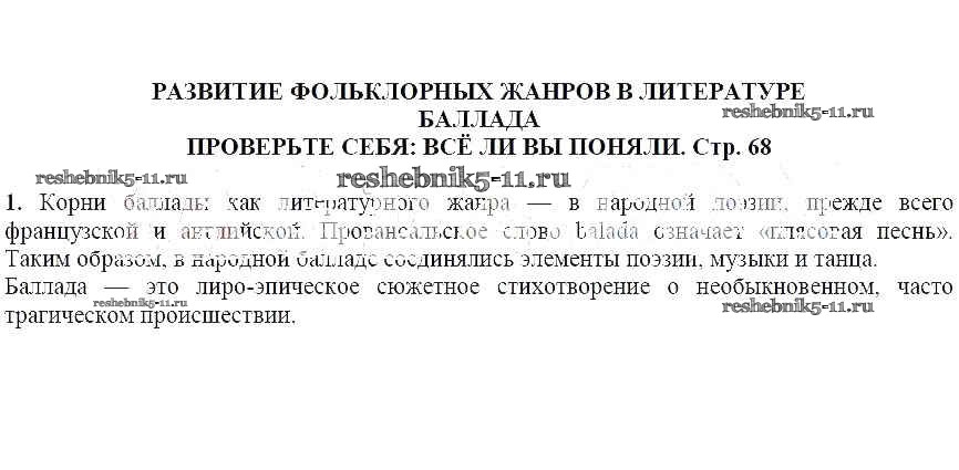Решебник / часть 1 / Развитие фольклорных жанров в литературе. Баллада / Проверьте себя / 1