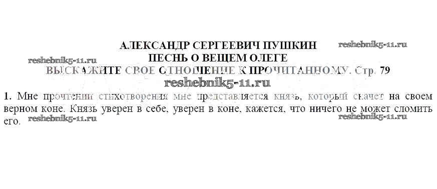 Решебник / часть 1 / Александр Сергеевич Пушкин. Песнь о Вещем Олеге / Выскажите свое отношение к прочитанному / 1