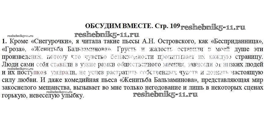Литература за 6 класс Ланин Учебник Алгоритм успеха Вентана-граф Обсудим вместе стр.109 1