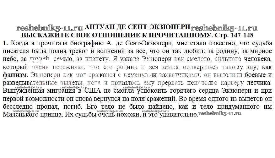 Решебник / часть 1 / Антуан Де Сент-Экзюпери / Выскажите свое отношение к прочитанному / 1