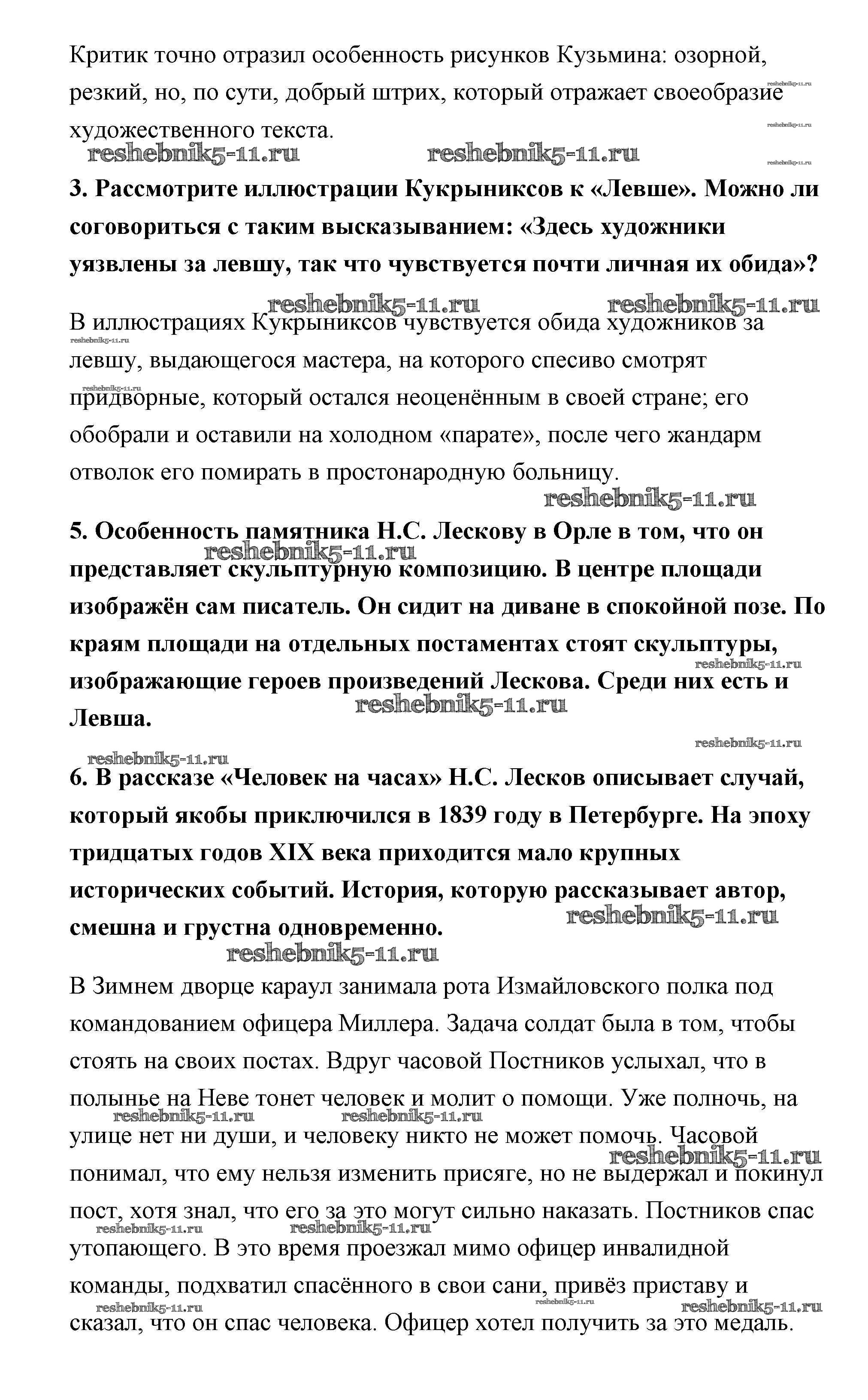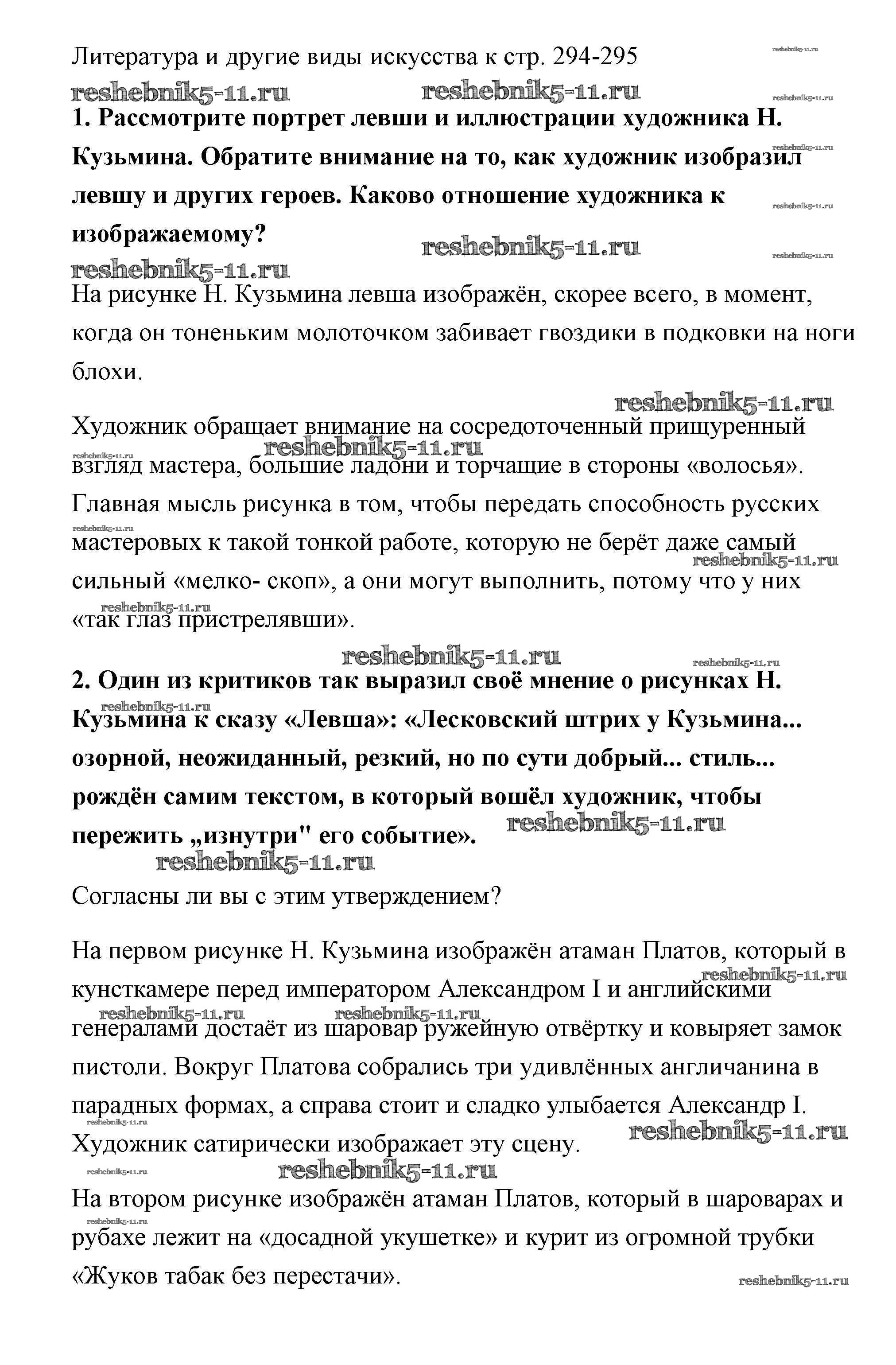 Готовая домашняя работа с ответами по Литературе за 6 класс Полухина, Коровина, Журавлев Учебник Часть 1 Просвещение 2016 ФГОС - Лесков страница 294-295