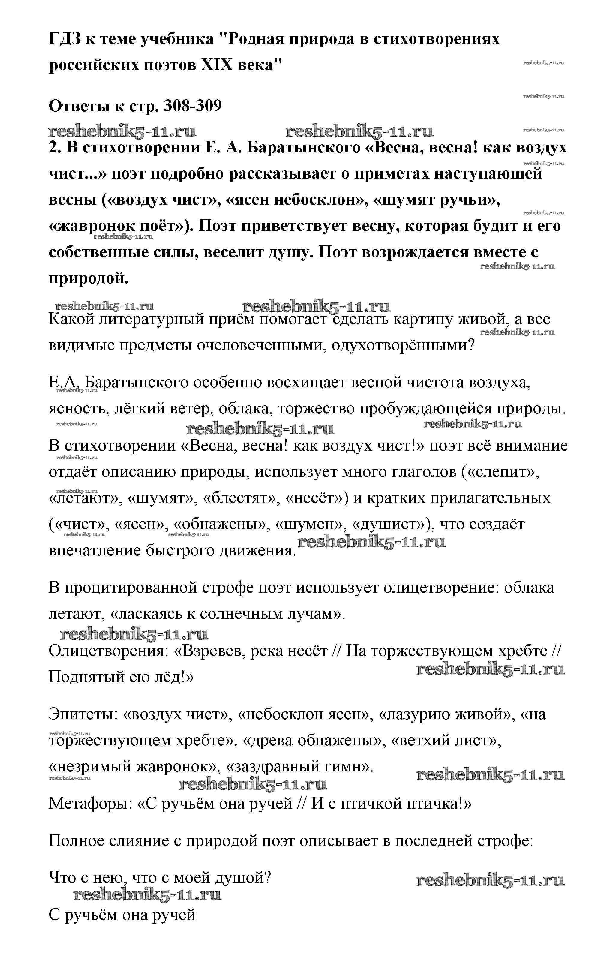 Готовая домашняя работа с ответами по Литературе за 6 класс Полухина, Коровина, Журавлев Учебник Часть 1 Просвещение 2016 ФГОС - Родная природа страница 308-309