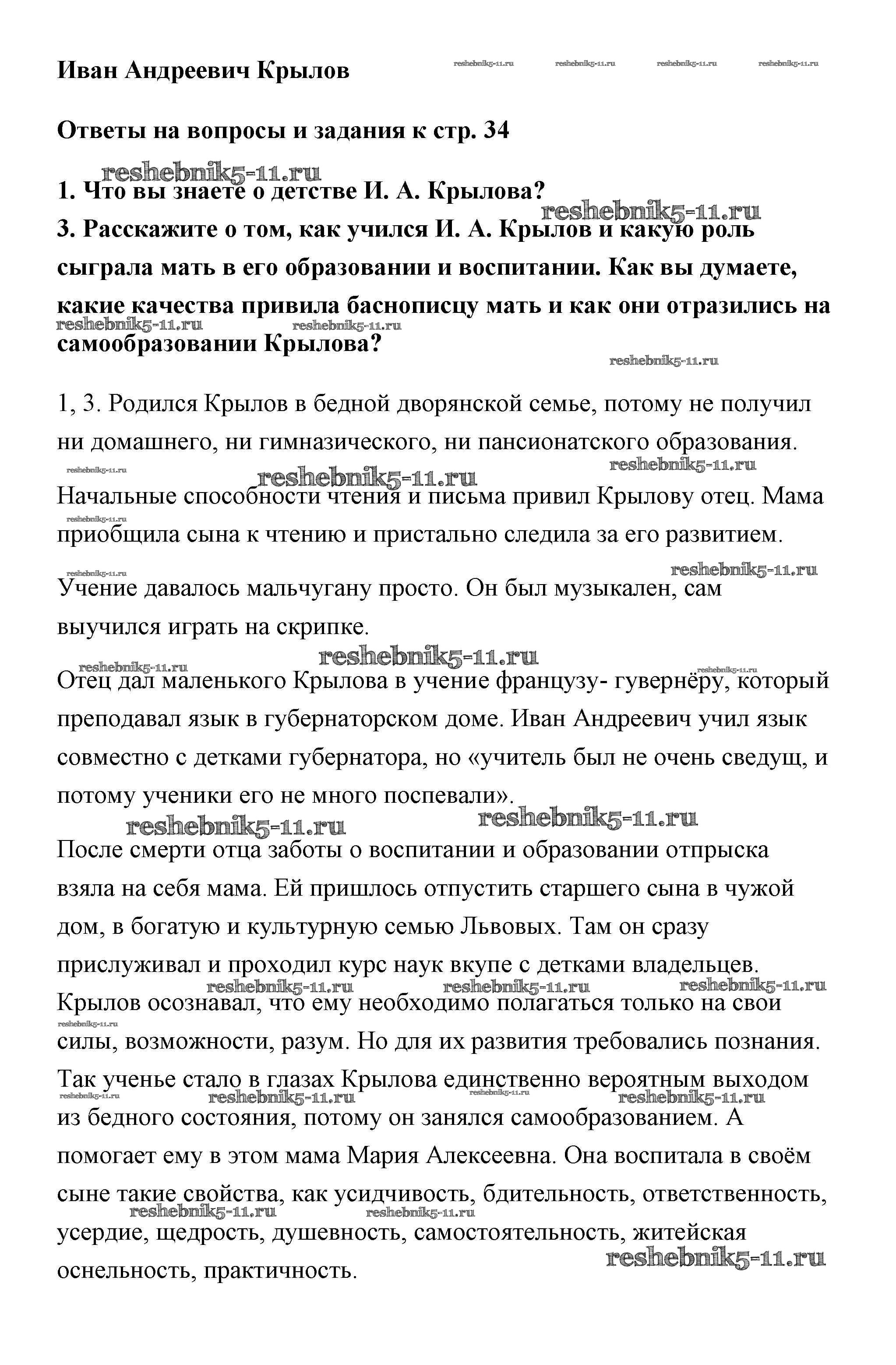 Готовая домашняя работа с ответами по Литературе за 6 класс Полухина, Коровина, Журавлев Учебник Часть 1 Просвещение 2016 ФГОС - Произведения русских писателей 18 века страница 34