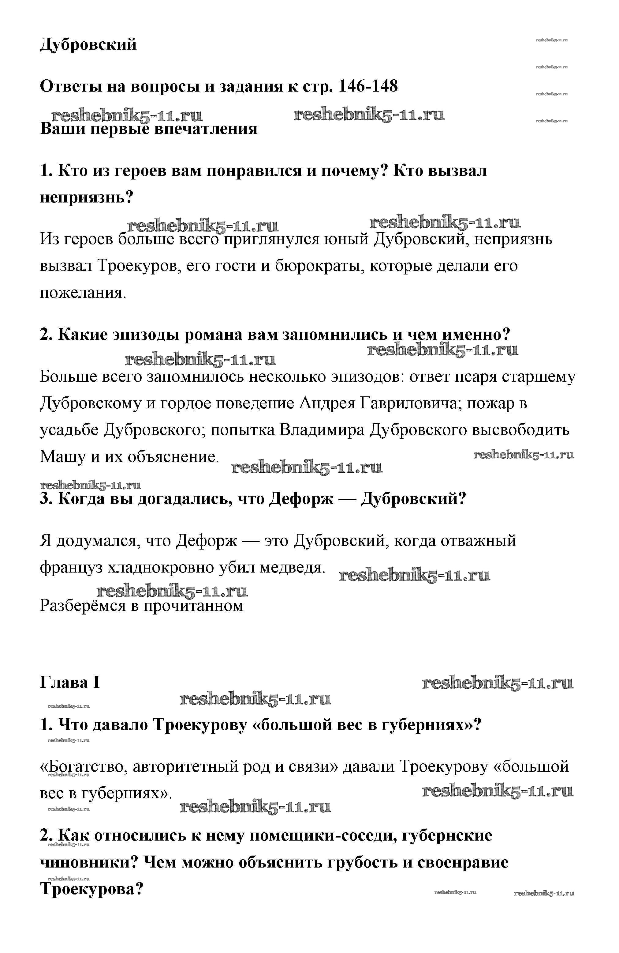 Готовая домашняя работа с ответами по Литературе за 6 класс Полухина, Коровина, Журавлев Учебник Часть 1 Просвещение 2016 ФГОС - Пушкин страница 146-148