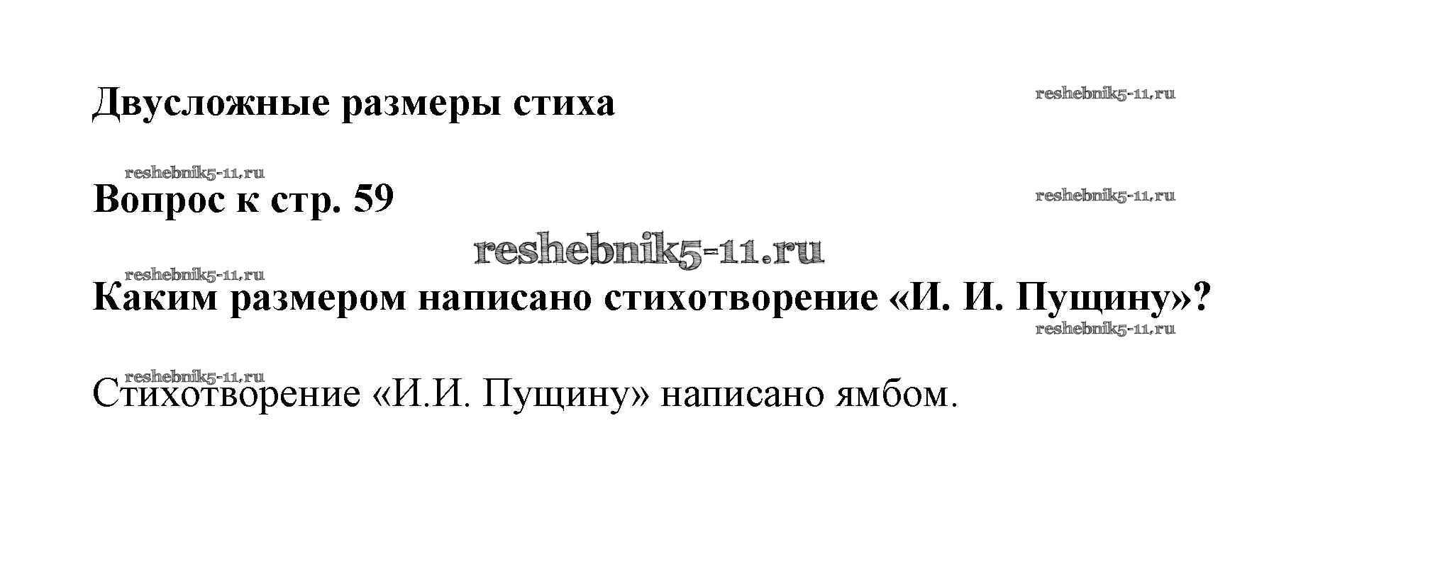 Готовая домашняя работа с ответами по Литературе за 6 класс Полухина, Коровина, Журавлев Учебник Часть 1 Просвещение 2016 ФГОС - Пушкин страница 59