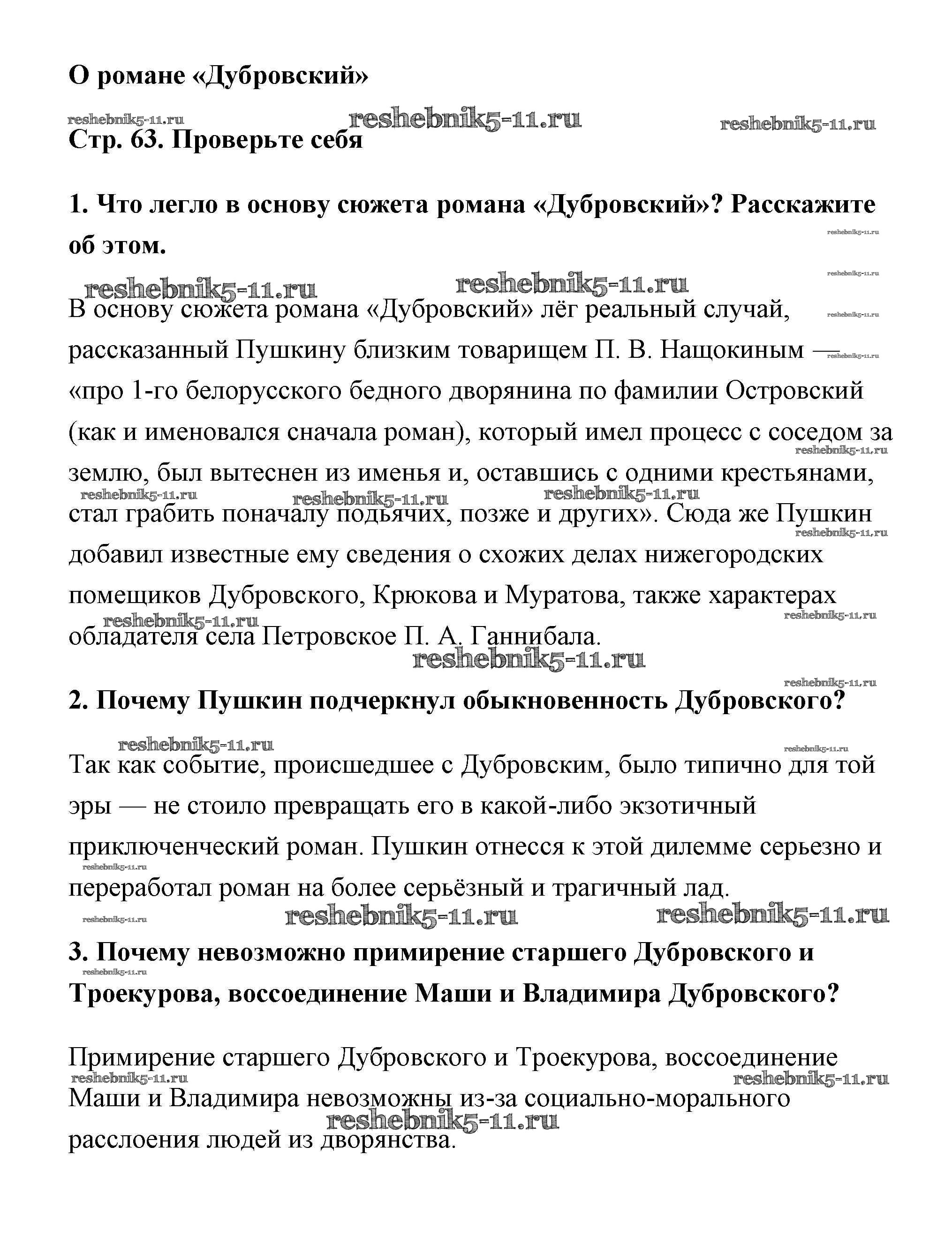 Готовая домашняя работа с ответами по Литературе за 6 класс Полухина, Коровина, Журавлев Учебник Часть 1 Просвещение 2016 ФГОС - Пушкин страница 63