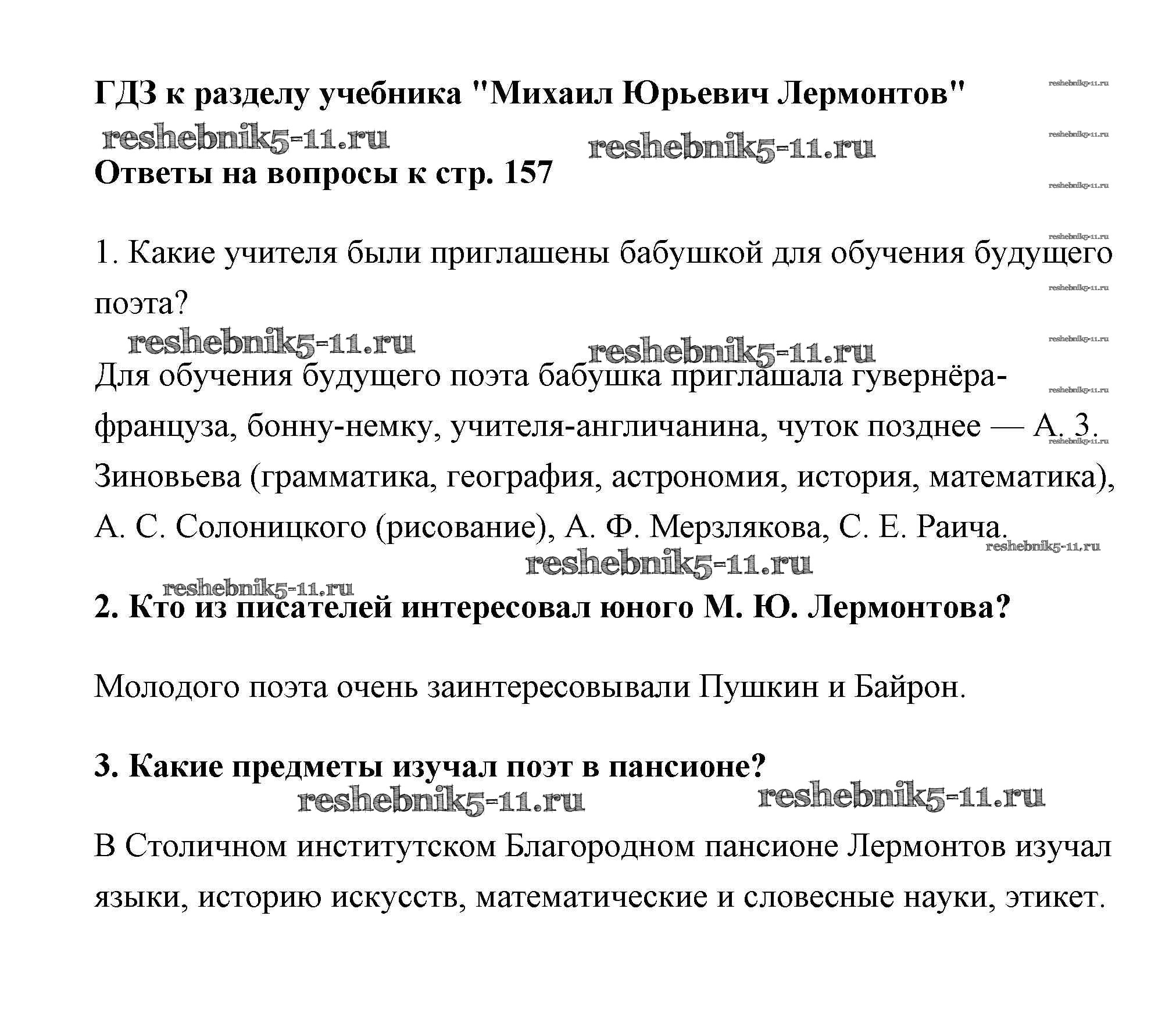 Решебник / часть 1 (старое 15-е издание) / Лермонтов / страница 157