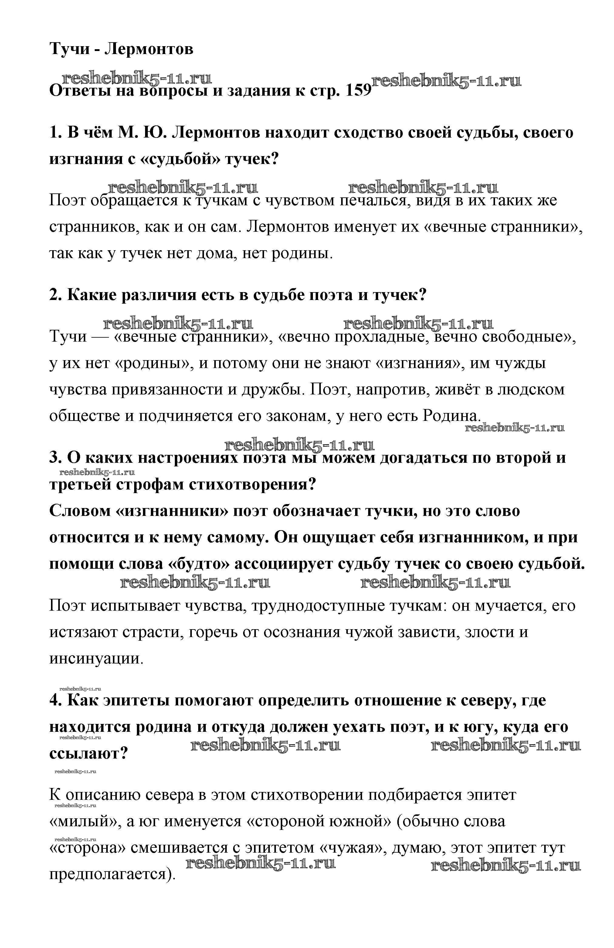 Решебник / часть 1 (старое 15-е издание) / Лермонтов / страница 159