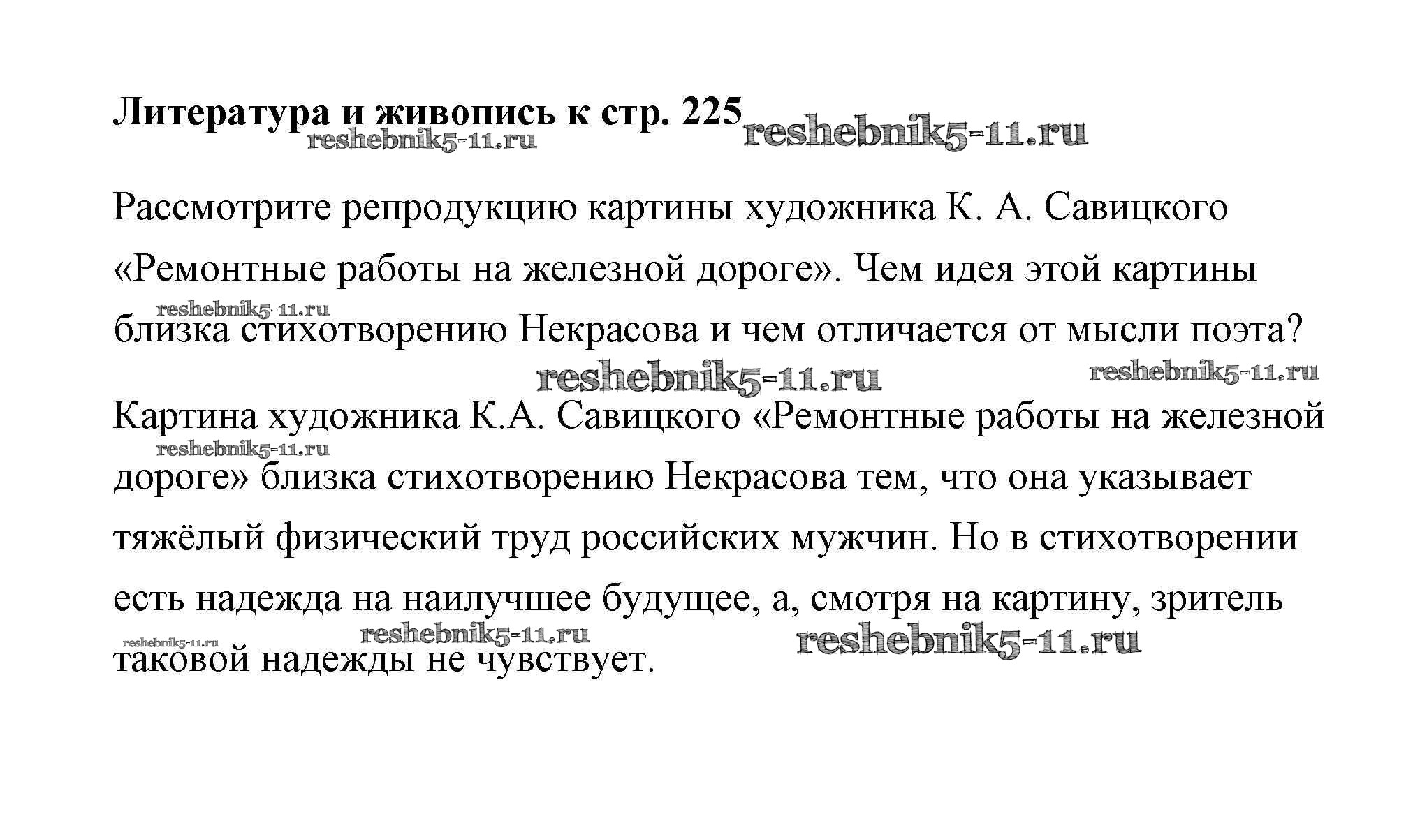Готовая домашняя работа с ответами по Литературе за 6 класс Полухина, Коровина, Журавлев Учебник Часть 1 Просвещение 2016 ФГОС - Некрасов страница 225
