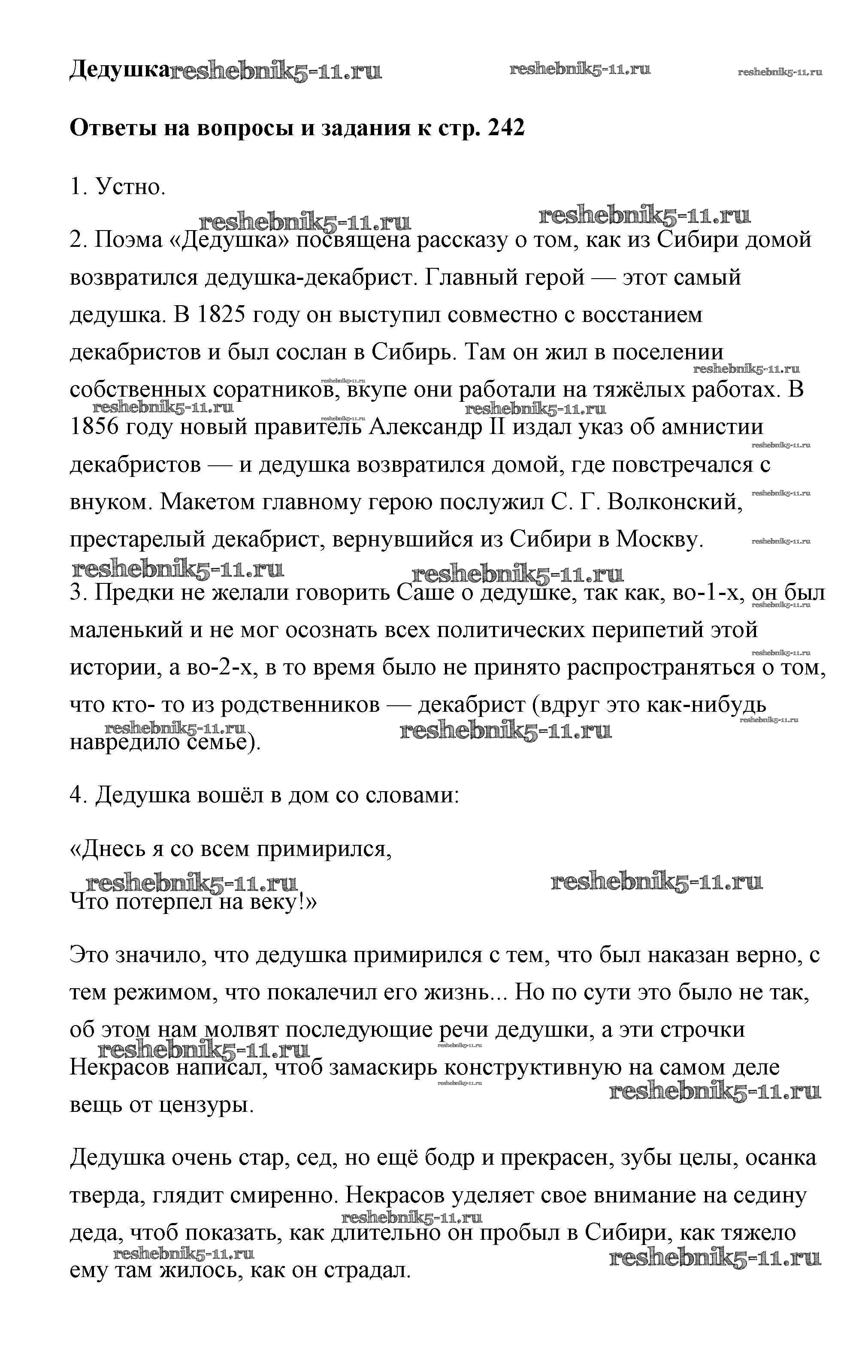 Готовая домашняя работа с ответами по Литературе за 6 класс Полухина, Коровина, Журавлев Учебник Часть 1 Просвещение 2016 ФГОС - Некрасов страница 242