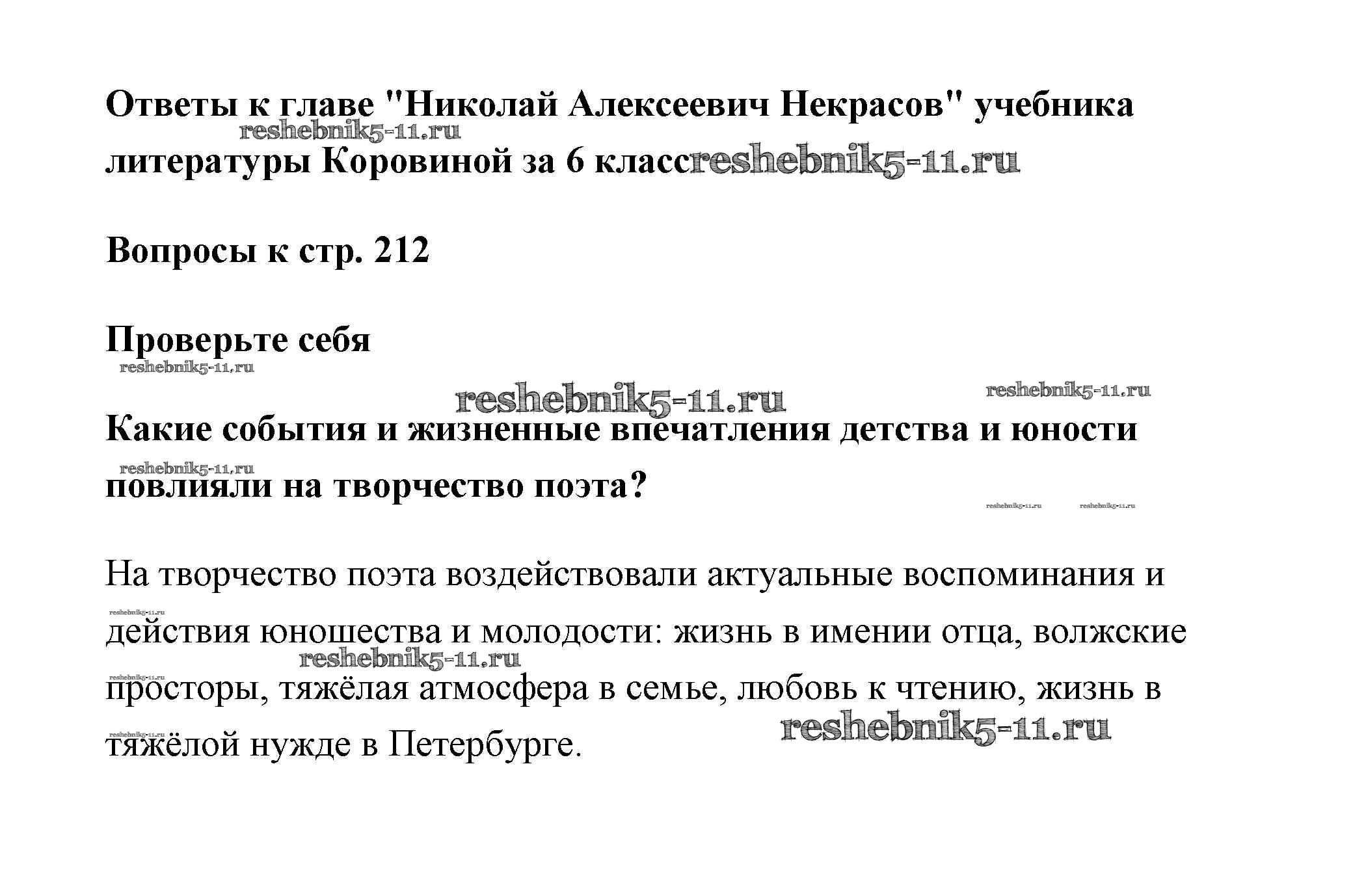 Готовая домашняя работа с ответами по Литературе за 6 класс Полухина, Коровина, Журавлев Учебник Часть 1 Просвещение 2016 ФГОС - Некрасов страница 212