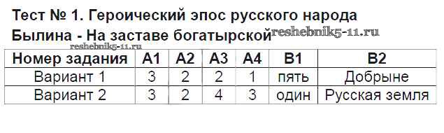 Готовая домашняя работа с ответами по Литературе за 6 класс Королева Контрольно-измерительные материалы (КИМ) ВАКО 2015 ФГОС - Тесты Тест №1. Героический эпос русского народа