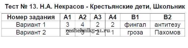 Готовая домашняя работа с ответами по Литературе за 6 класс Королева Контрольно-измерительные материалы (КИМ) ВАКО 2015 ФГОС - Тесты Тест №13. Крестьянские дети, Школьник