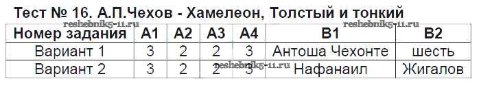 Готовая домашняя работа с ответами по Литературе за 6 класс Королева Контрольно-измерительные материалы (КИМ) ВАКО 2015 ФГОС - Тесты Тест №16. Хамелеон, Толстый и тонкий