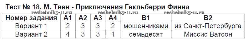 Готовая домашняя работа с ответами по Литературе за 6 класс Королева Контрольно-измерительные материалы (КИМ) ВАКО 2015 ФГОС - Тесты Тест №18. Приключения Гекльберри Финна